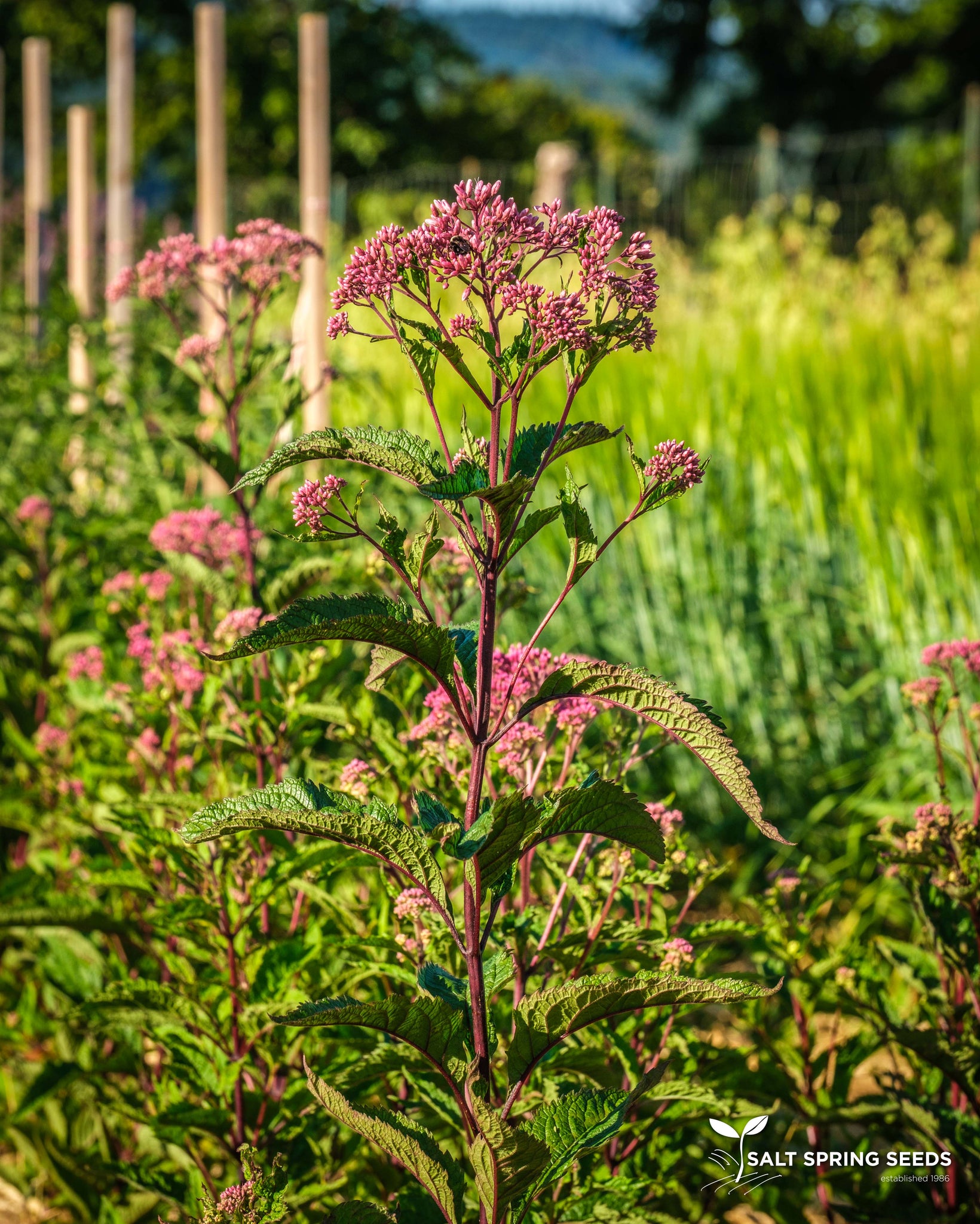 (Eupatorium purpureum.) Tall graceful perennial with rosy-purple flowers that attract butterflies. Valuable kidney remedy.